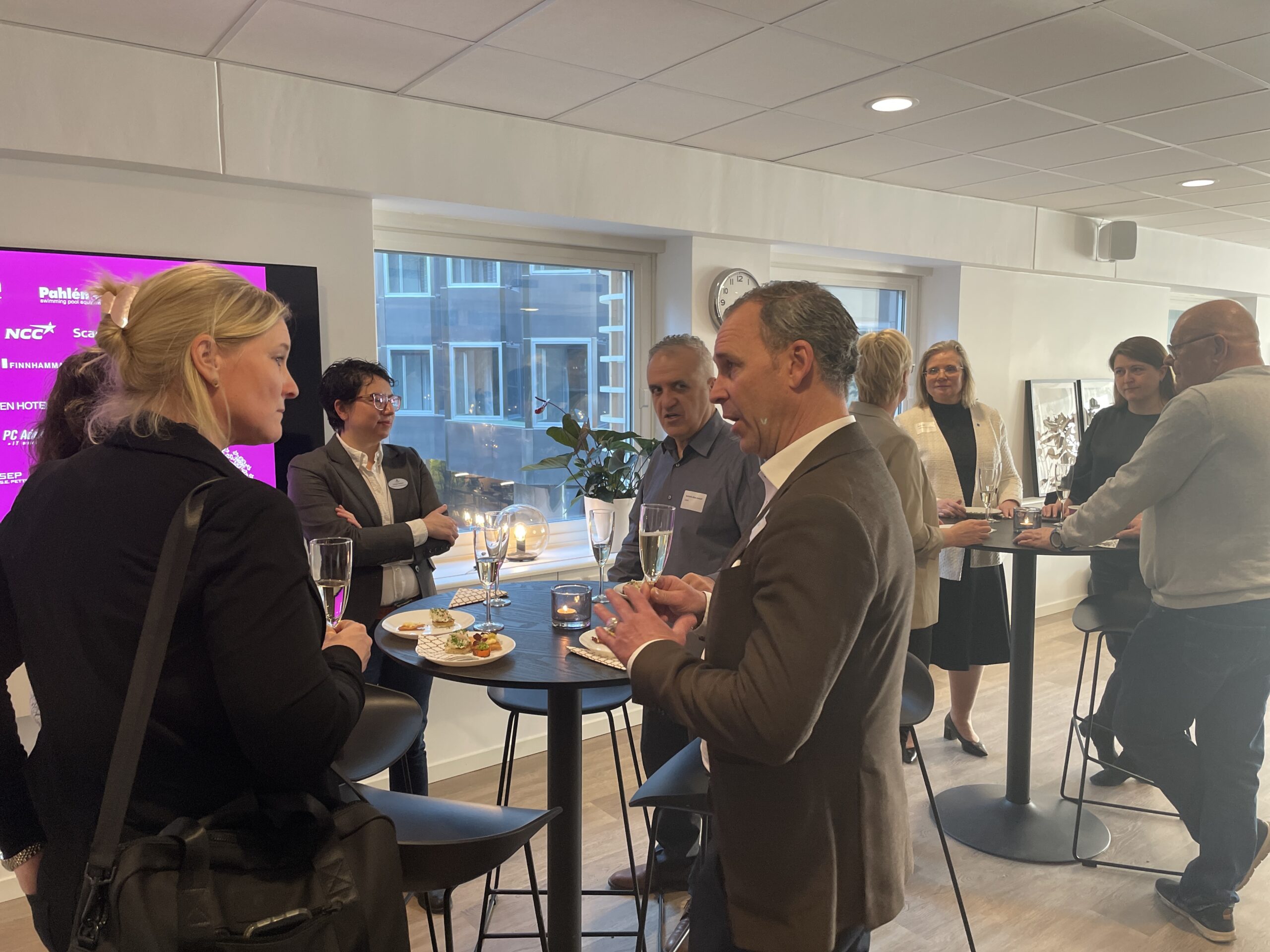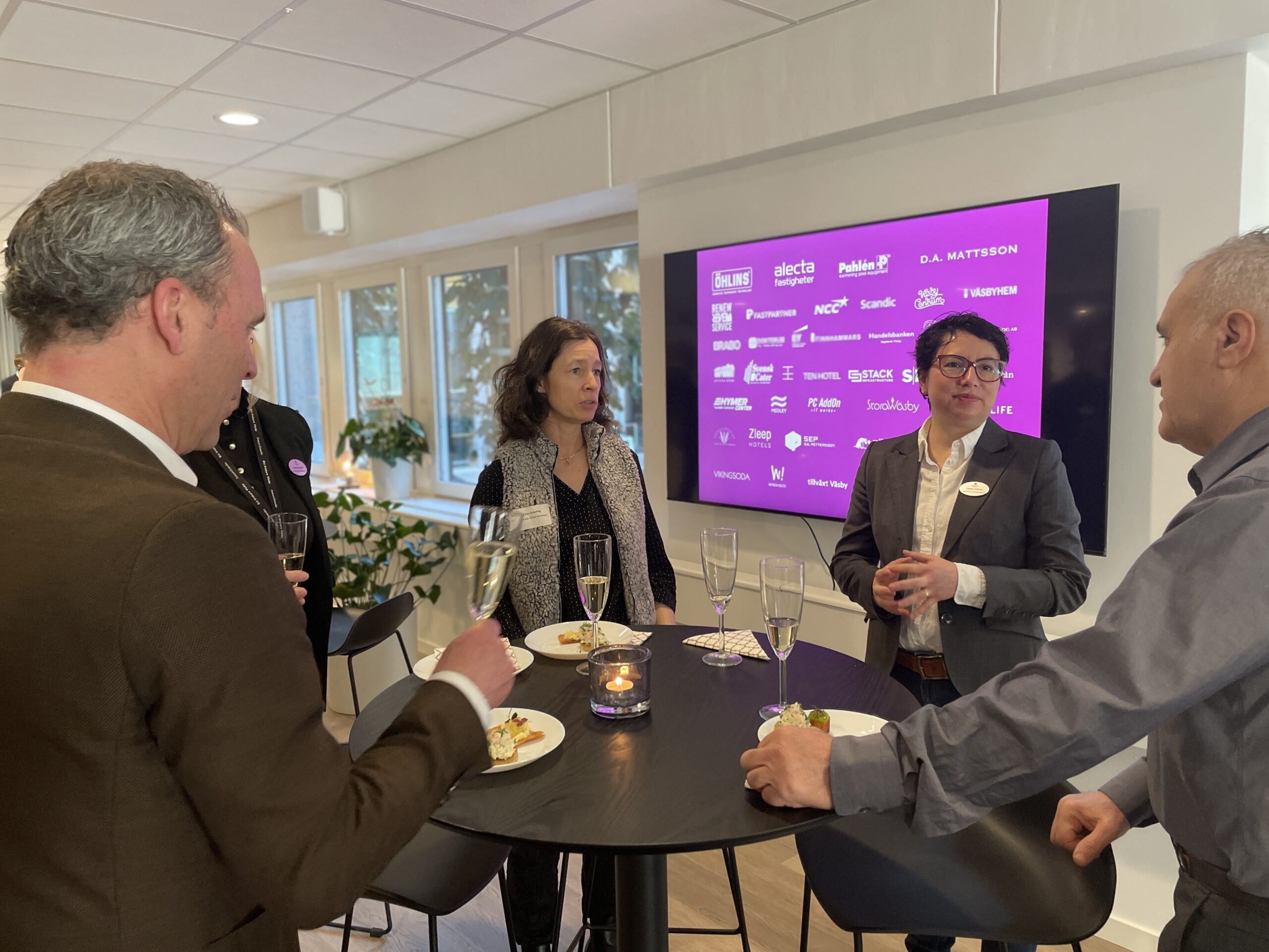 Vi samlades i vår lounge för mingel med snittar och bubbel innan årsstämman.