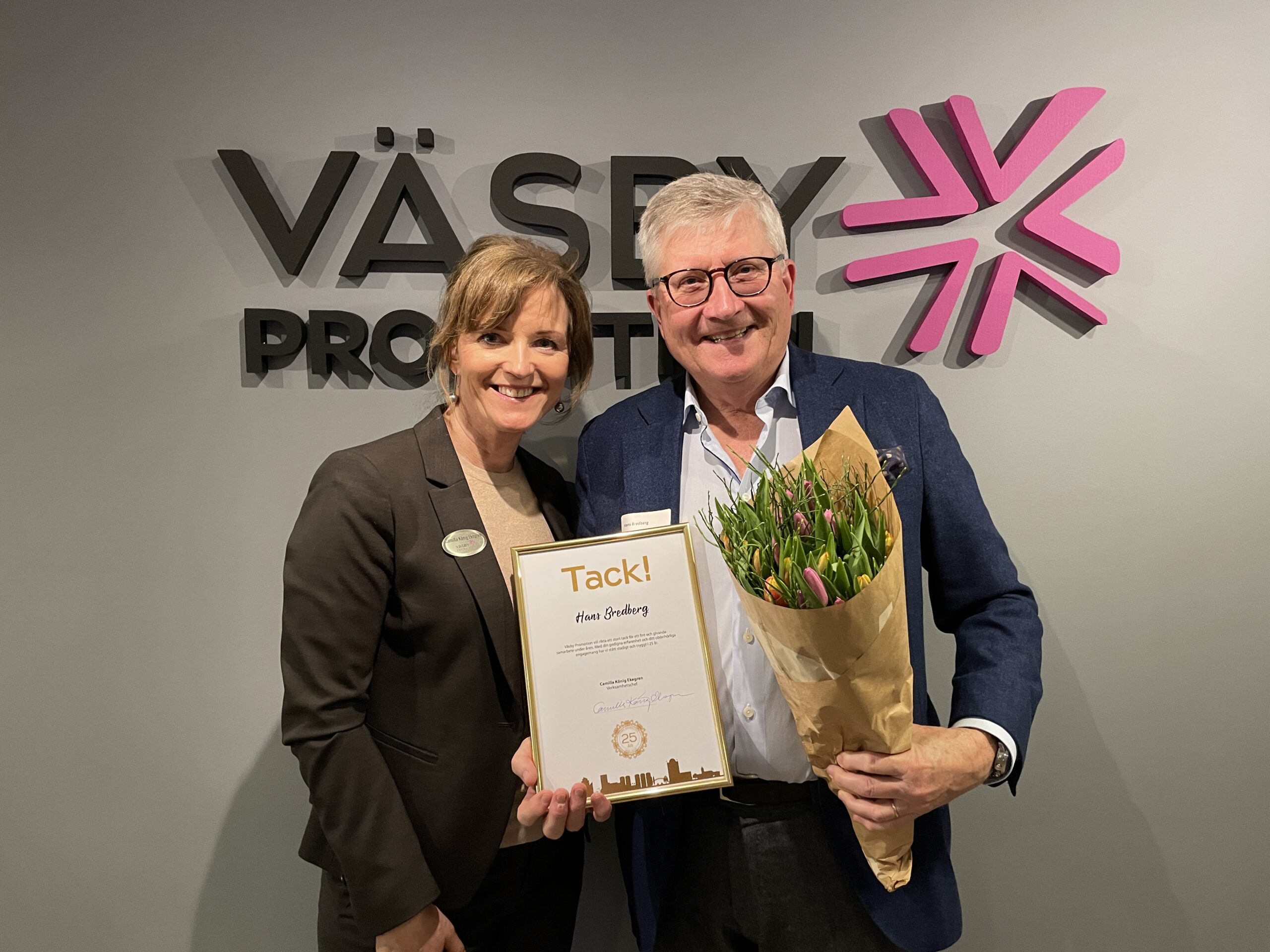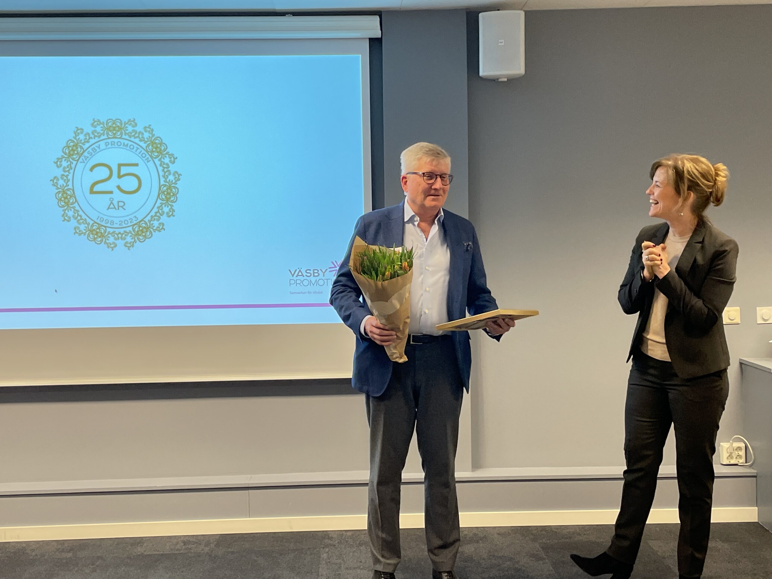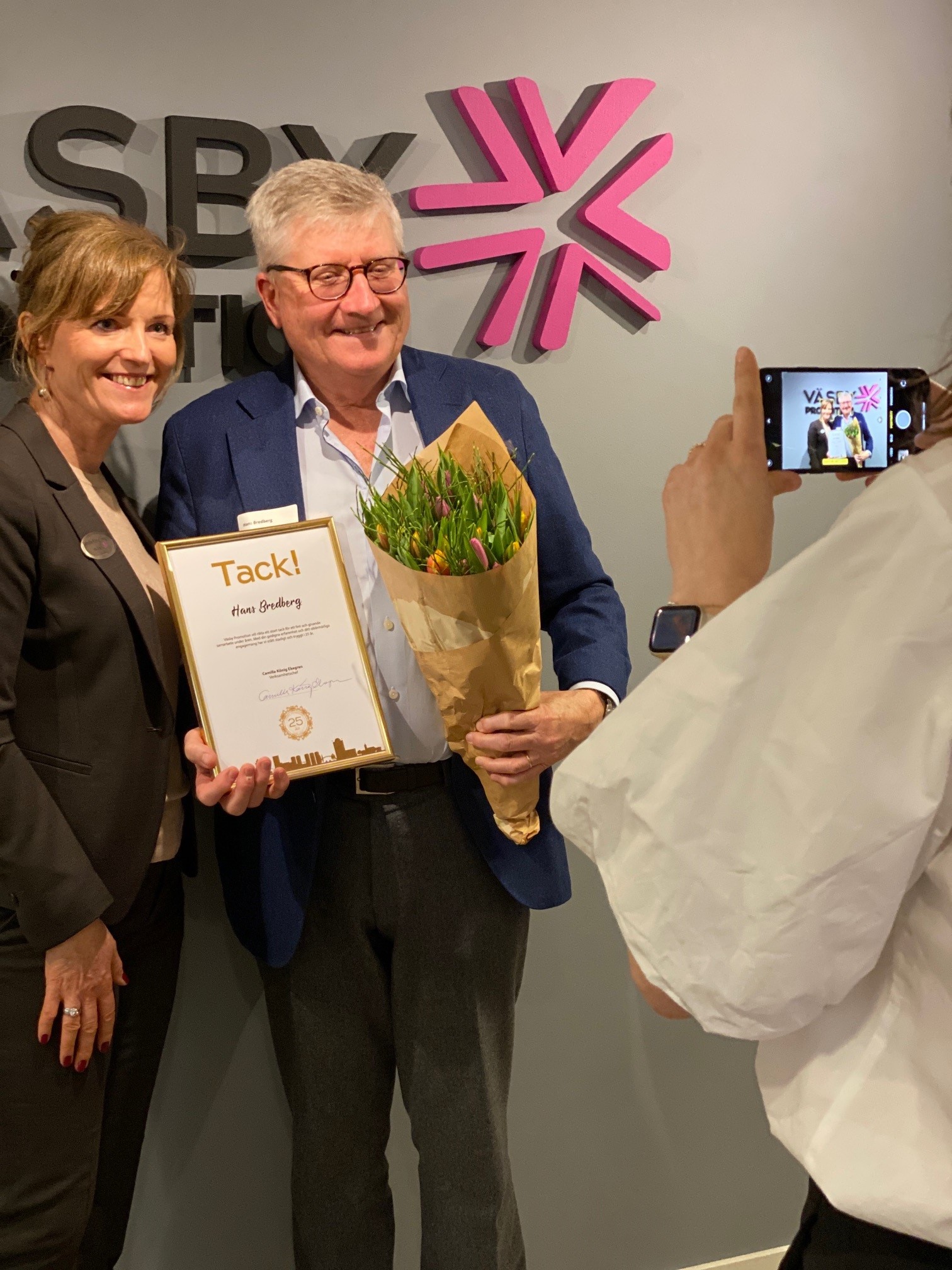 Väsby Promotions revisor Hans Bredberg från Finnhammars Revisionsbyrå går nu i pension och tackades av med blommor och diplom. Tack för ett fint och givande samarbete under 25 år.